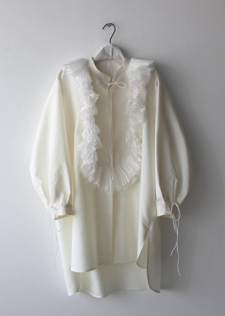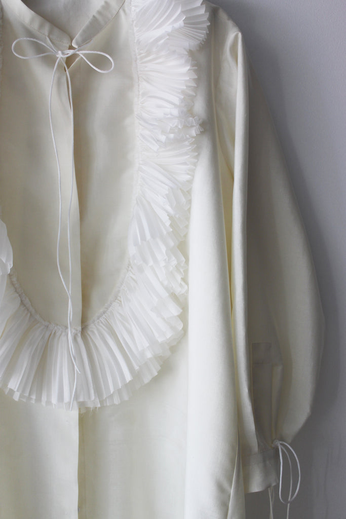 Silk pleated plastron shirt in Limoncello