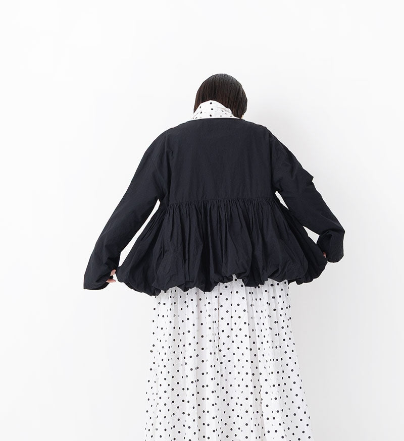 This pullover top features a soft, balloon hem. The fabric has just the right amount of firmness, creating a flattering silhouette. Its simple design and texture make it suitable for any season.