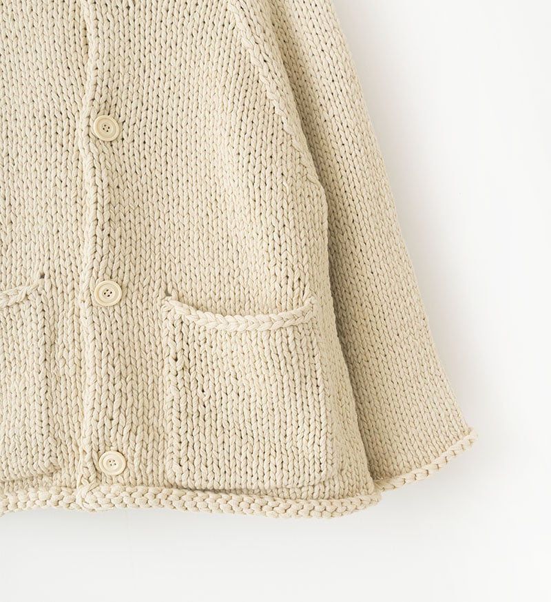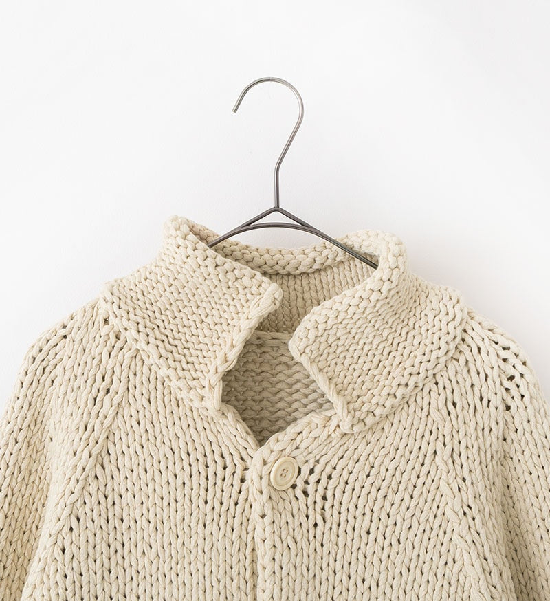 This knitwear is made with thicker yarn for a craft-like feel, creating a loose knit that makes a statement.