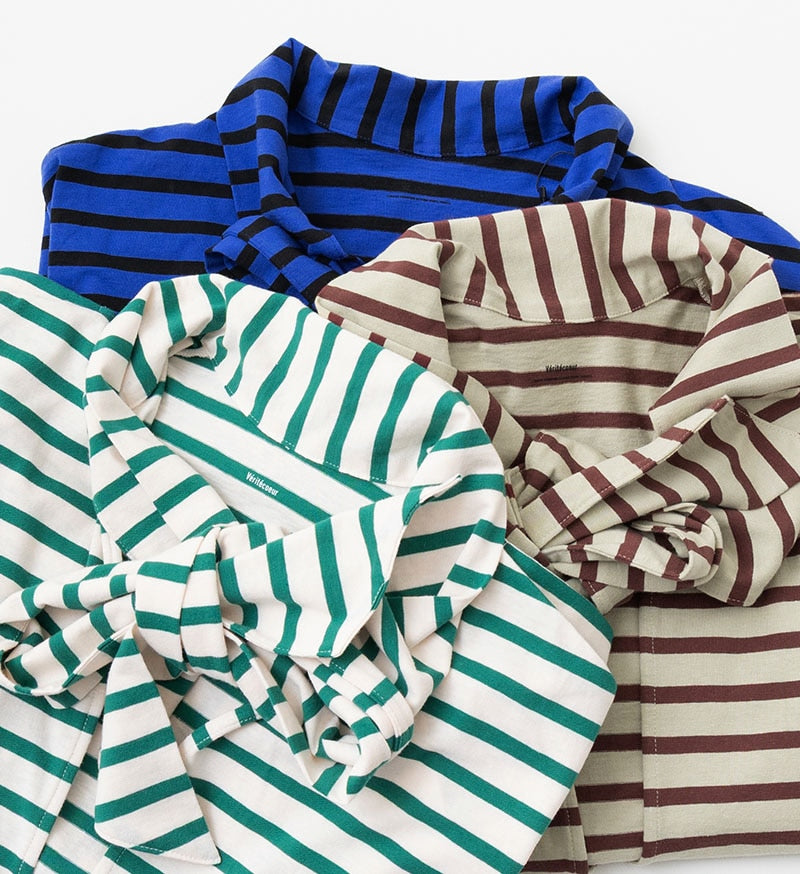This piece is carefully knitted using Mexican taco cotton with a slightly tightly woven yarn-dyed border pattern. The yarn is fluffy and soft, creating a soft texture. Its moderate thickness and firmness help it retain its shape and maintain a beautiful silhouette.